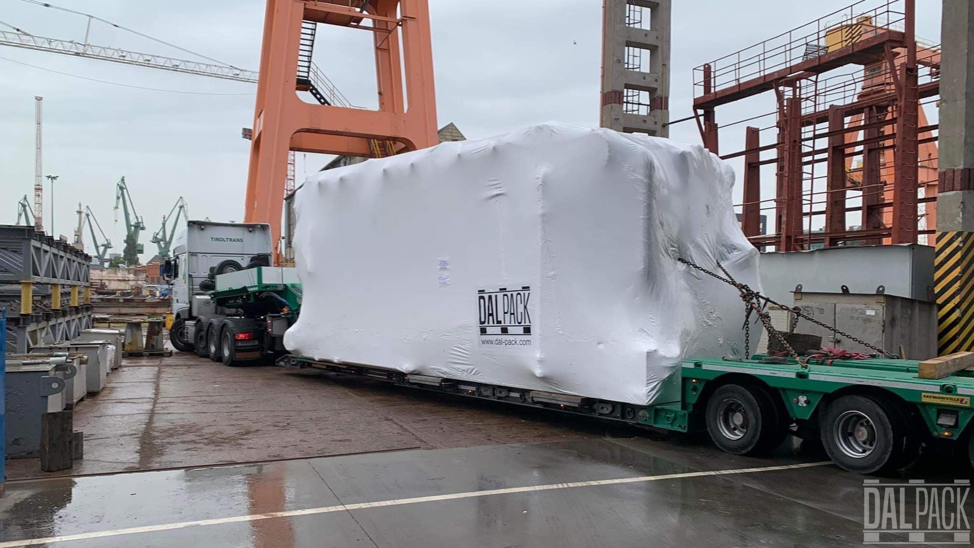 Na powyższym zdjęciu przedstawiamy urządzenie, które spakowaliśmy do transportu drogowego.