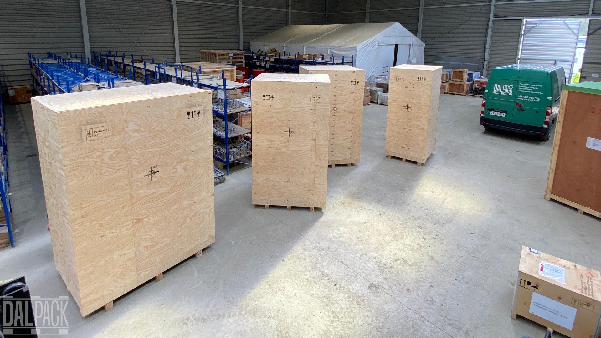 Wykonaliśmy cztery skrzynie transportowe, w których zabezpieczyliśmy na czas frachtu morskiego szafy sterownicze.