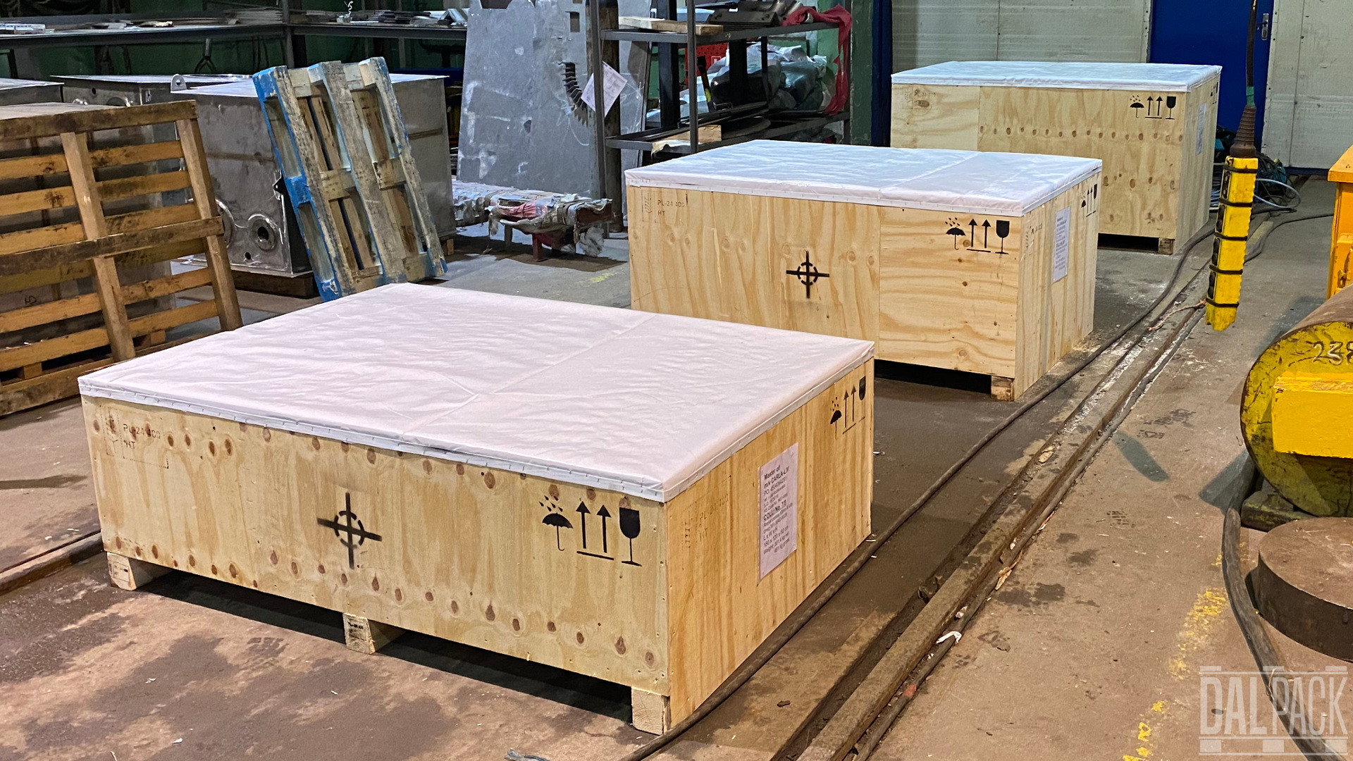 Pakujemy na czas transportu morskiego, lotniczego oraz drogowego dowolne konstrukcje, pojedyncze maszyny, elementy maszyn, a także całe linie produkcyjne. Wykonujemy drewniane opakowania eksportowe dla przesyłek przemysłowych (podesty, palety, podbudowy, skrzynie ze sklejki, skrzynie z OSB oraz skrzynie z pełnego drewna). Zabezpieczamy ładunki ponadgabarytowe folią termokurczliwą. Mocujemy towary w kontenerach morskich.