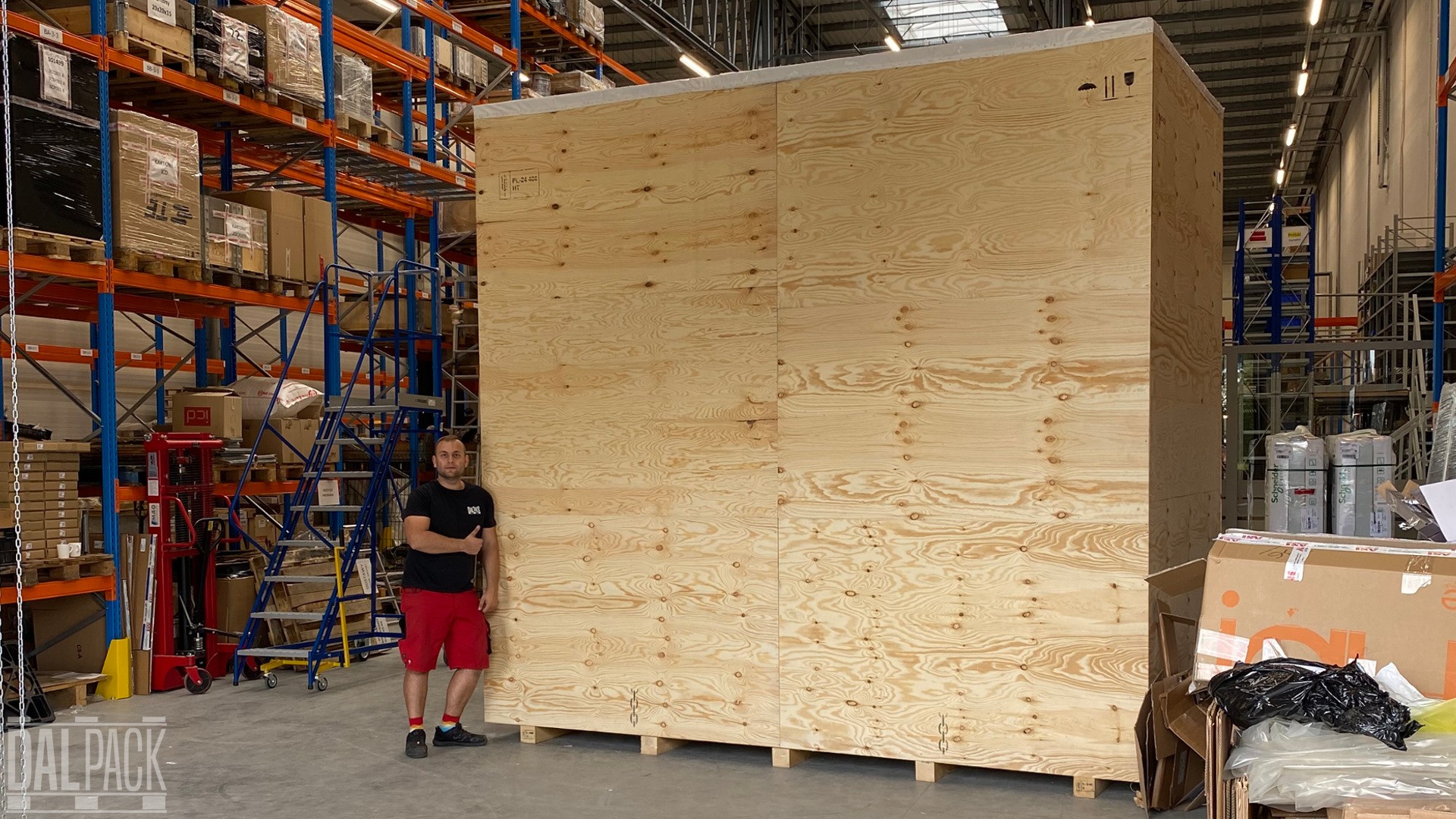 W przedstawioną powyżej skrzynię IPPC spakowaliśmy urządzenie o wymiarach 3600 x 2000 x 3200 mm.
