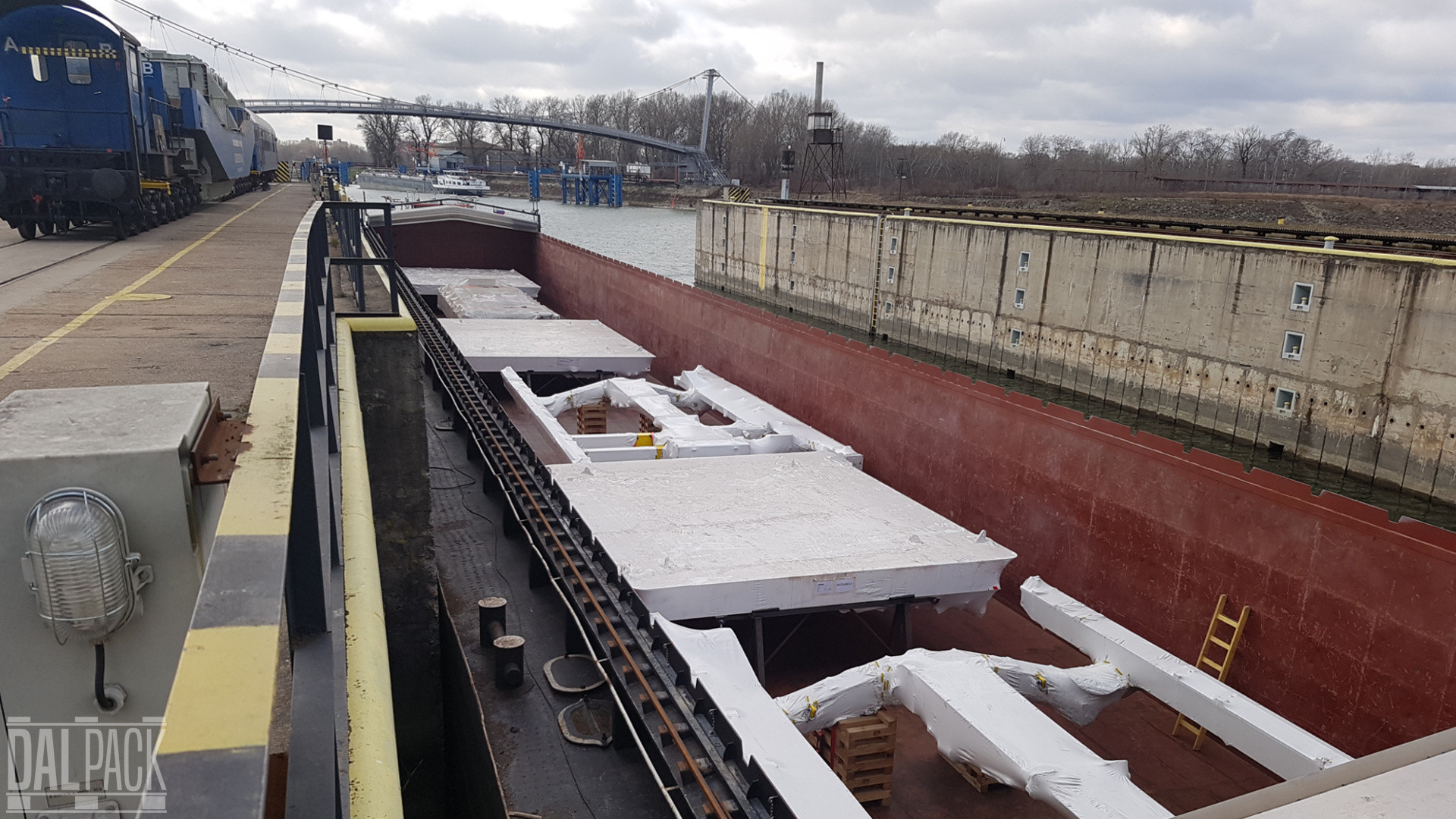 Na powyższym zdjęciu przedstawiamy jedną z trzech konstrukcji dla przemysłu stoczniowego, którą zabezpieczyliśmy na czas transportu drogowego.