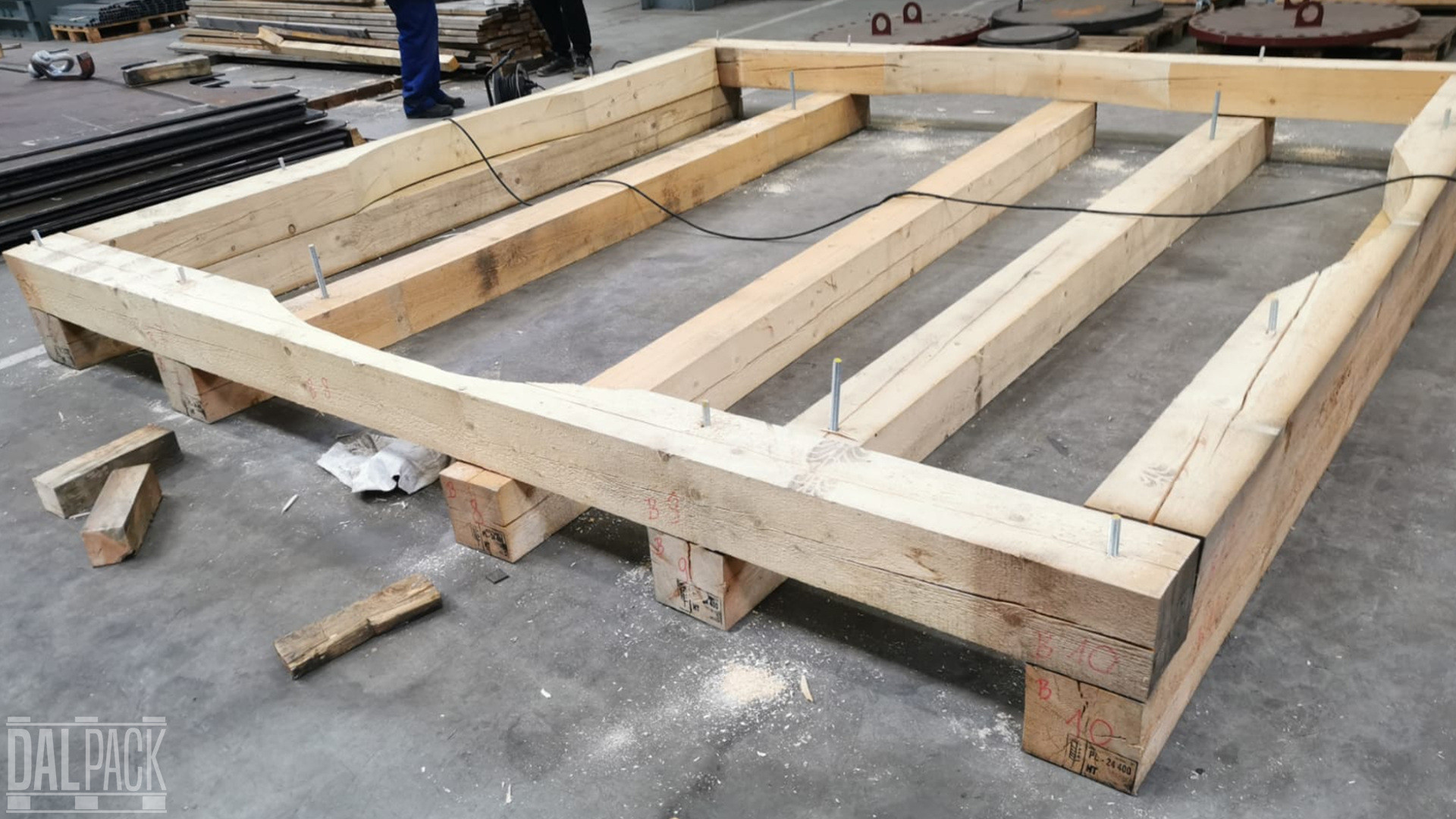Do wykonania opakowania zastosowaliśmy kantówki o przekroju 200 x 200 mm.