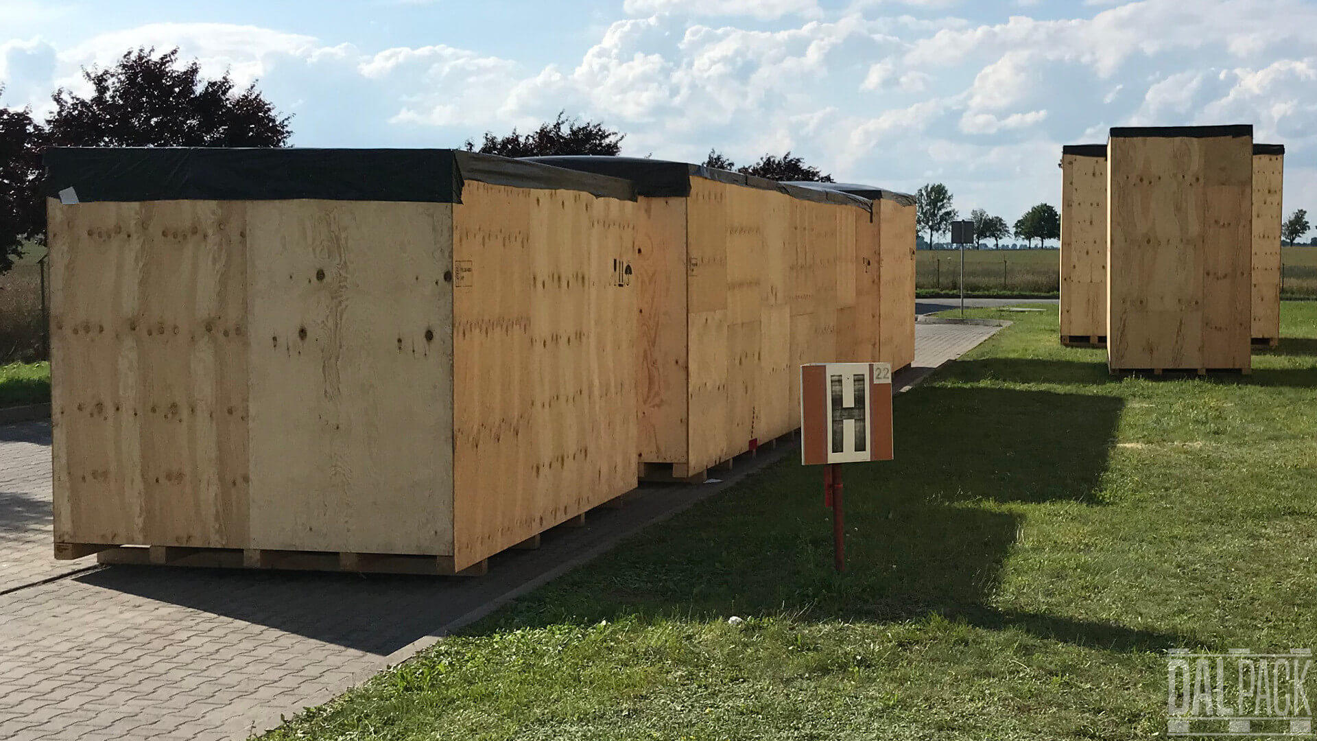Na zdjęciu przedstawiamy skrzynie, w które spakowaliśmy maszyny do transportu drogowego.