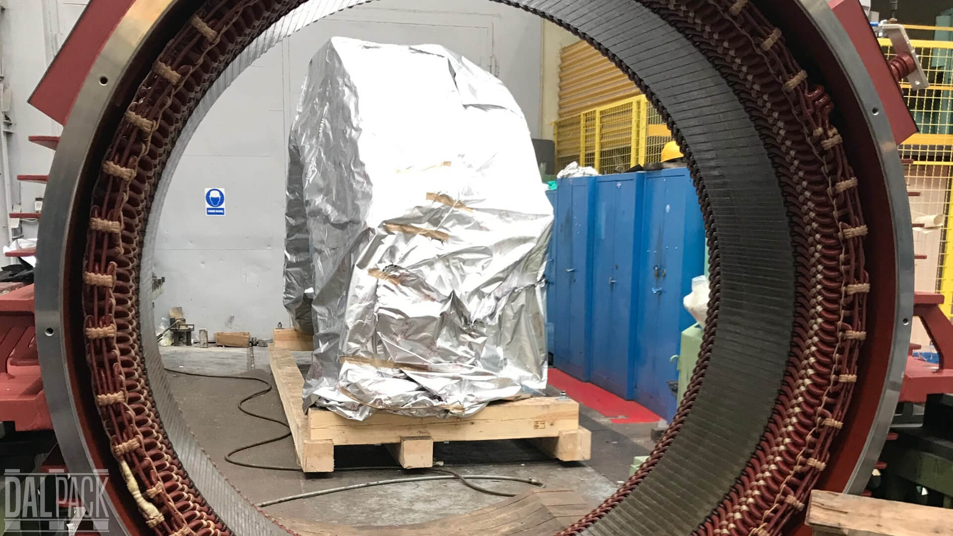 Na zdjęciu przedstawiamy spakowaną przez nas do transportu morskiego górną połówkę stojana generatora.