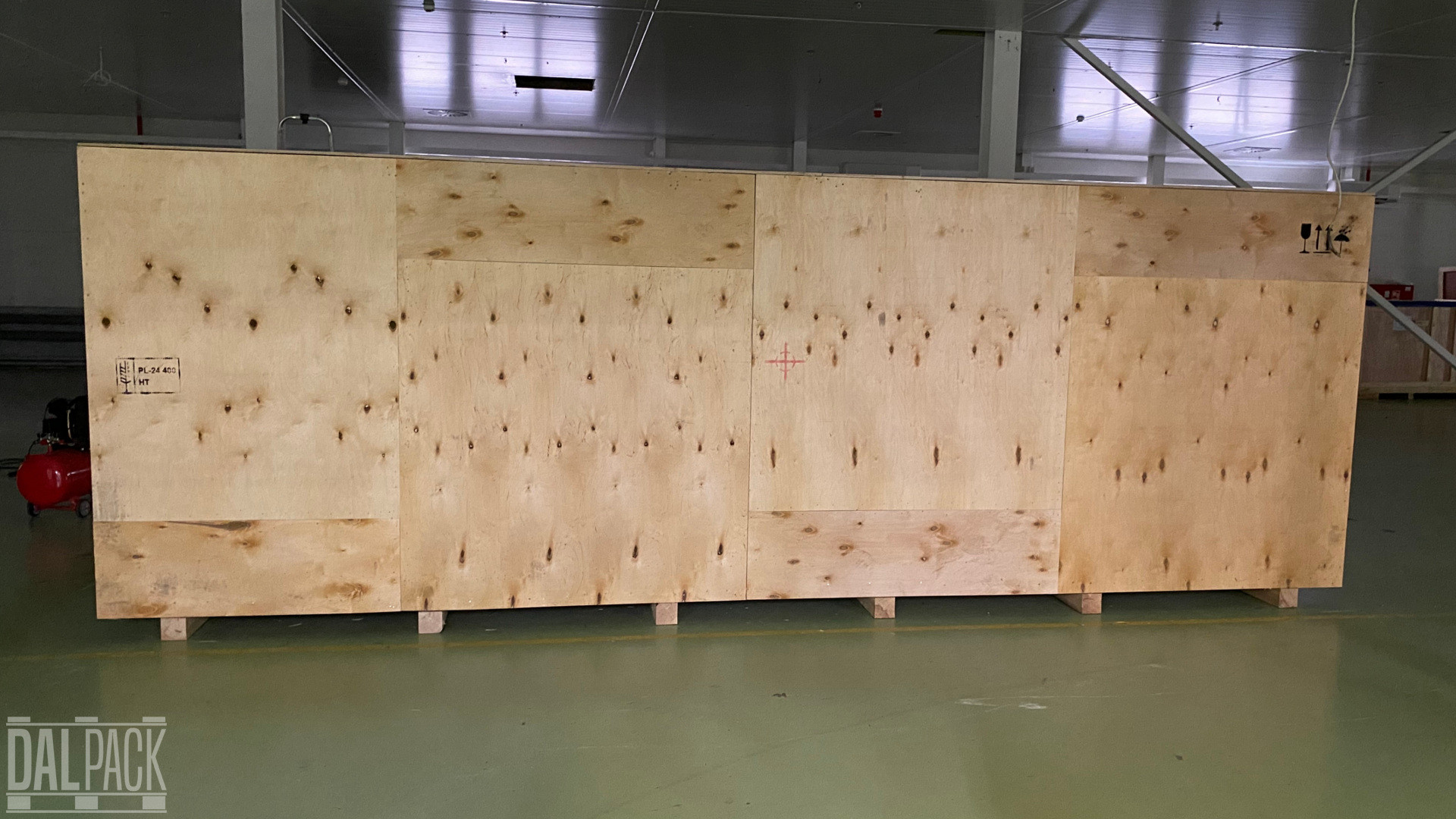 Na powyższym zdjęciu prezentujemy skrzynię ze sklejki, w którą spakowaliśmy maszynę o długości 5500 mm.