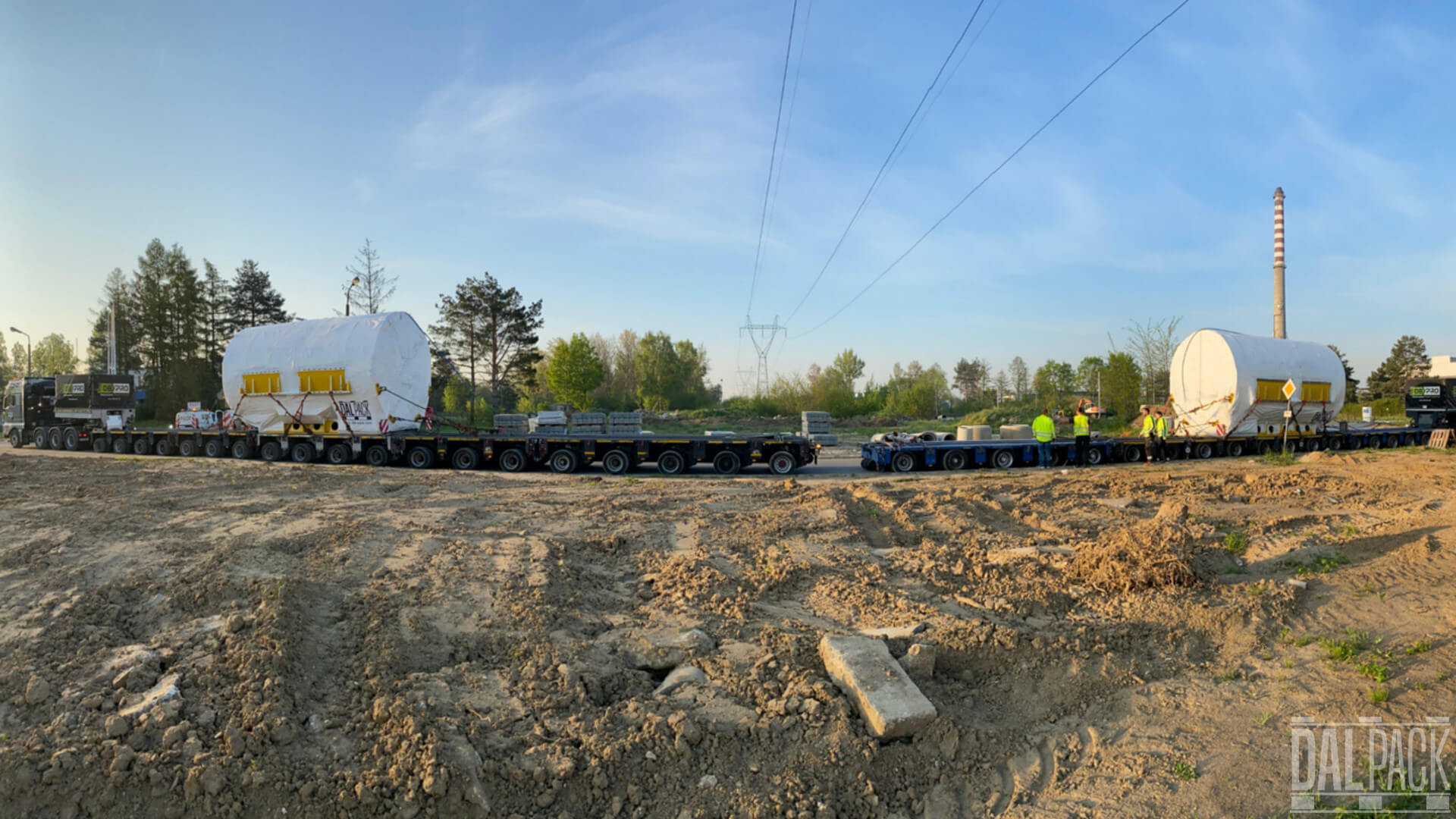 Na powyższym zdjęciu przedstawiamy dwa ładunki, które zabezpieczyliśmy na czas transportu drogowego, śródlądowego oraz morskiego.